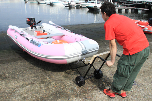 ボートエース対応の2分割ドーリーです。ノーパンクタイヤなので充気不要で長持ちします。 |